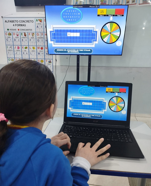 Roberta começou o trabalho identificando os conteúdos previstos no planejamento para suas turmas do 3º e 4º anos do Ensino Fundamental. Entre eles, estavam os esportes de invasão, como futebol e handebol. A partir daí, decidiu usar ferramentas de inteligência artificial para revisar materiais, criar perguntas e propor atividades interativas relacionadas a esses esportes.